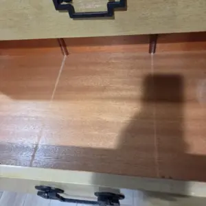 features five drawers for ample storage space, standing at a height of 45 inches. Manufactured in the 1950s, this vintage dresser exudes a