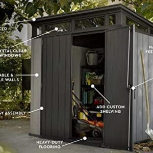 Spacious & Ventilated: With a generous 296.6 cubic feet of storage, clear windows, and built-in ventilation, this backyard storage building provides plenty of room to keep all your outdoor essentials organized, accessible, and dry.