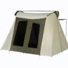 Durable canvas: Breathable, heavy-duty cotton canvas keeps the tent cool in summer and warm in cooler weather while resisting wind and rain.