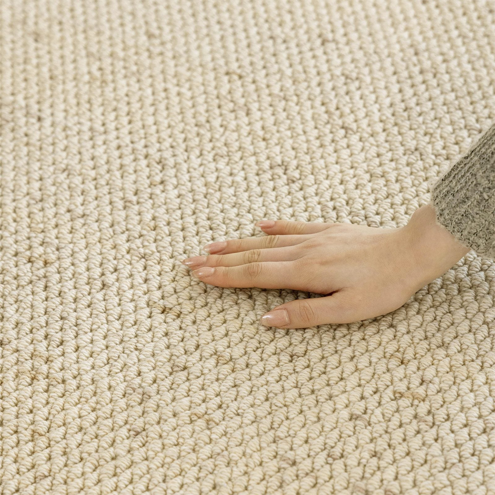 Crafted from the softest, most ethereal wool, this bespoke rug is a dream woven into reality. Imagine stepping onto a sun-kissed cloud, its gentle warmth cradling your feet. The earthy hues whisper of moss-covered stones and autumn soil, grounding your space in serenity. Each texture is a story, a deliberate stroke of art, transforming your room into a sanctuary of tactile comfort and organic elegance.