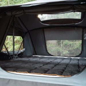 The first super-sized TentBox, equipped to sleep families of 4. The TentBox XL has two skylights, dual layer memory foam mattress, a foot-friendly ‘flat-step’ ladder, and a new rainfly design meaning less poles. It’s a softsheel tent with a new fabric cover and an upgraded ripstop polyester shell meaning less sunbleaching, higher rated rainproofing and YKK zips throughout. Expect new, premium quality.